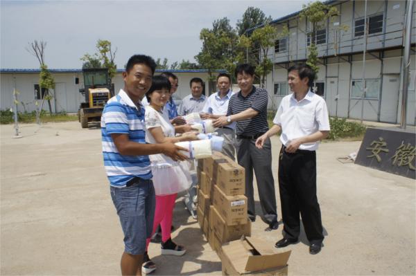 7月31日上午,集團(tuán)公司副總經(jīng)理許克順,副總會計師王曉軍,工會副主席吳曉伍等一行在公司黨委書記、總經(jīng)理李世龍,黨委副書記、紀(jì)委書記曹興堂,工會主席王永來等陪同下,冒著酷暑來到當(dāng)涂青山河工業(yè)園區(qū)工程看望并慰問了堅守崗位的一線職工,給職工送去絲絲清涼。