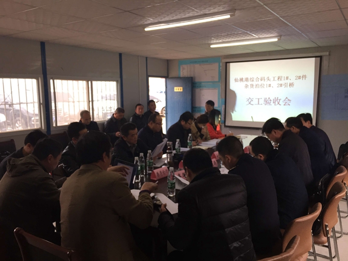 3月10日,在仙桃港碼頭項目現(xiàn)場會議室召開的仙桃港碼頭工程驗收會議上,武漢港務(wù)集團(tuán)總經(jīng)理助理徐繼傳正式宣布仙桃港碼頭1#、2#件雜貨泊位,1#、2#引橋通過單位工程驗收。仙桃市交通局、海事局、質(zhì)監(jiān)站、武港集團(tuán),設(shè)計院、監(jiān)理組、港灣檢測,施工方等代表參加了會議。