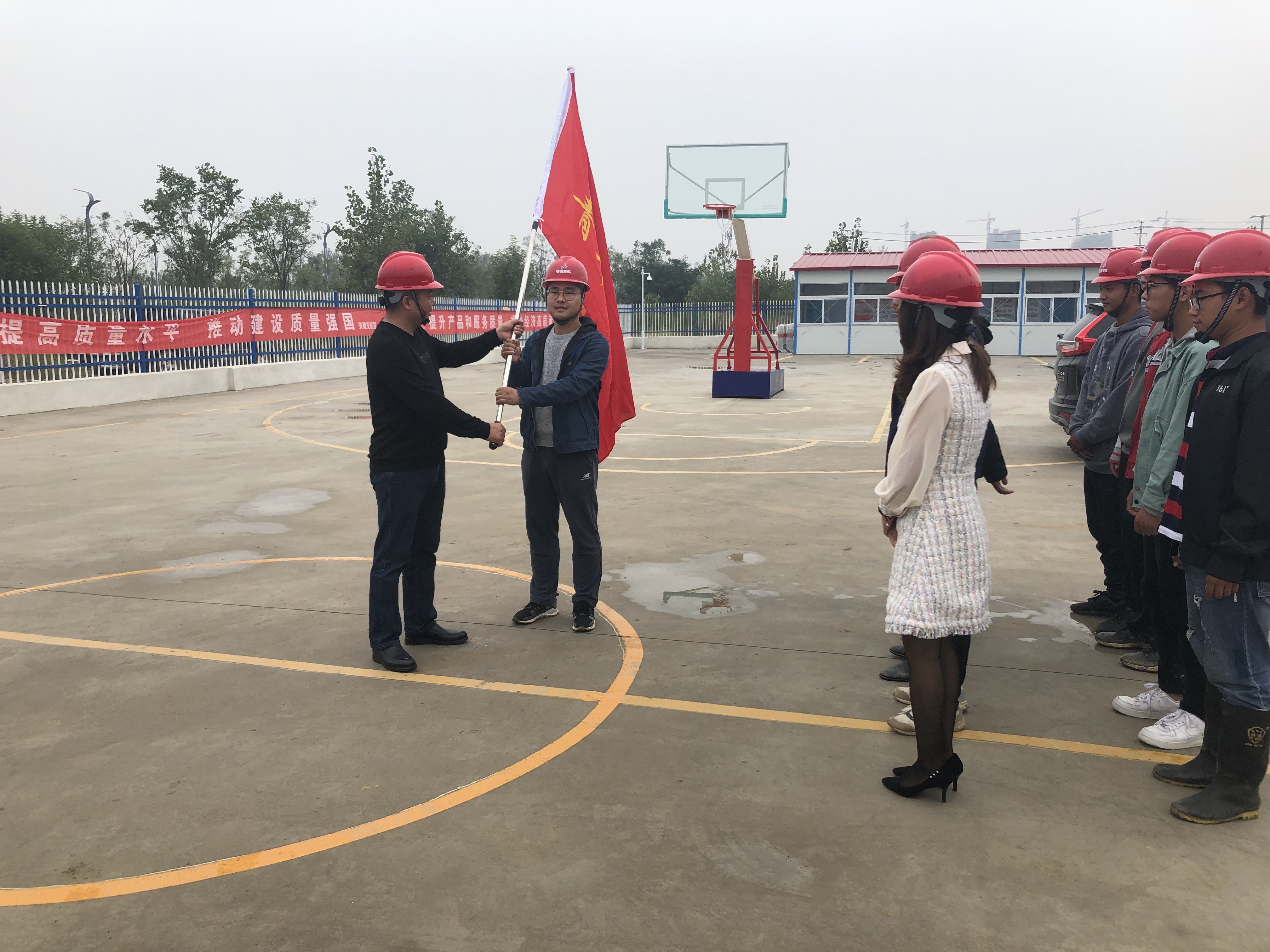 2019年10月10日,多金泗縣EPC項(xiàng)目部團(tuán)支部組織開(kāi)展青年志愿者授旗儀式,黨支部書(shū)記曹萬(wàn)飛為青年志愿者授旗。